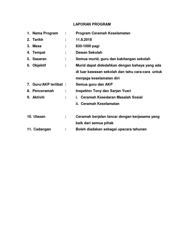 Contoh Laporan Keselamatan Dalam Dan Luar Sekolah